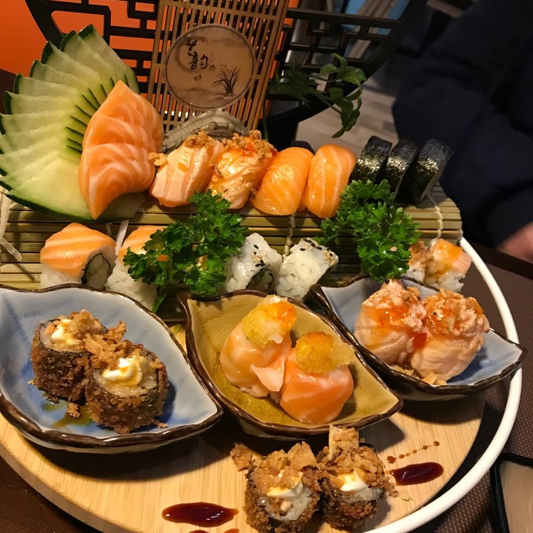 Restaurante de Sushi e cozinha chinesa, tudo preparado na hora.